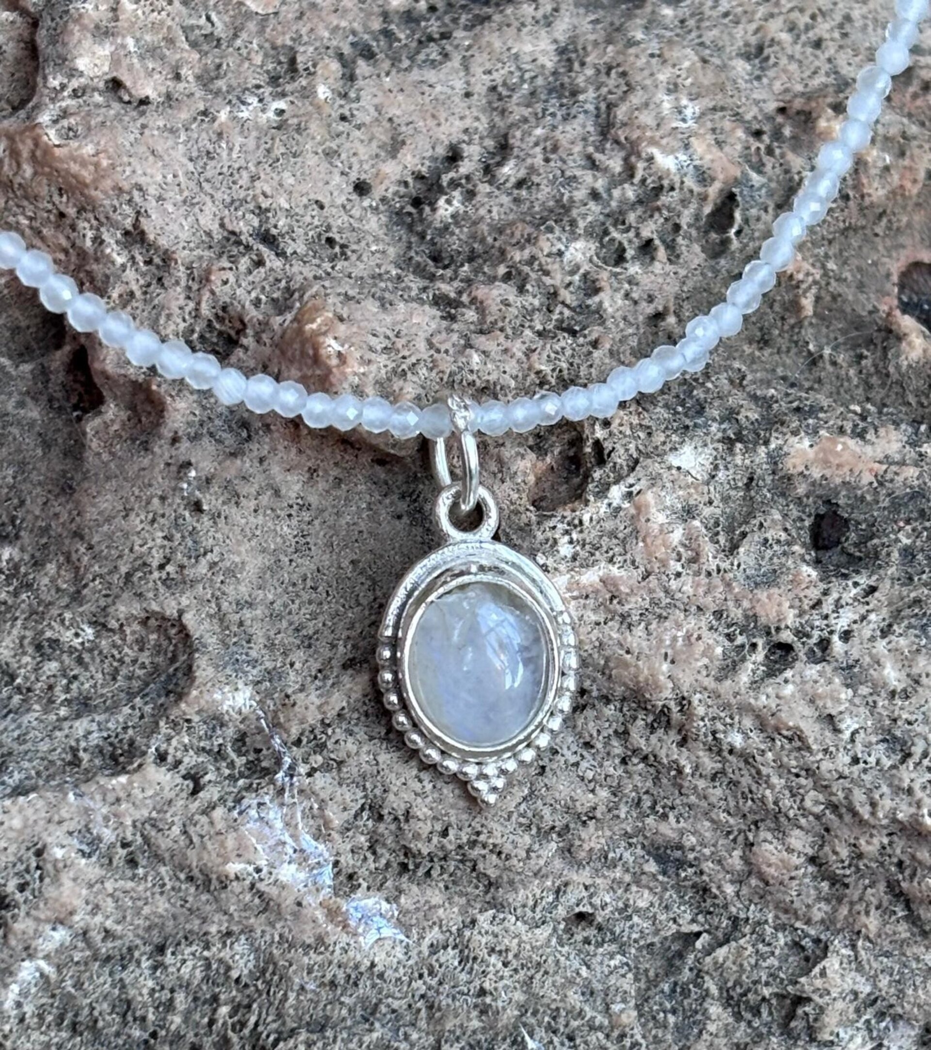 Gargantilla facetada piedra luna y colgante piedra luna