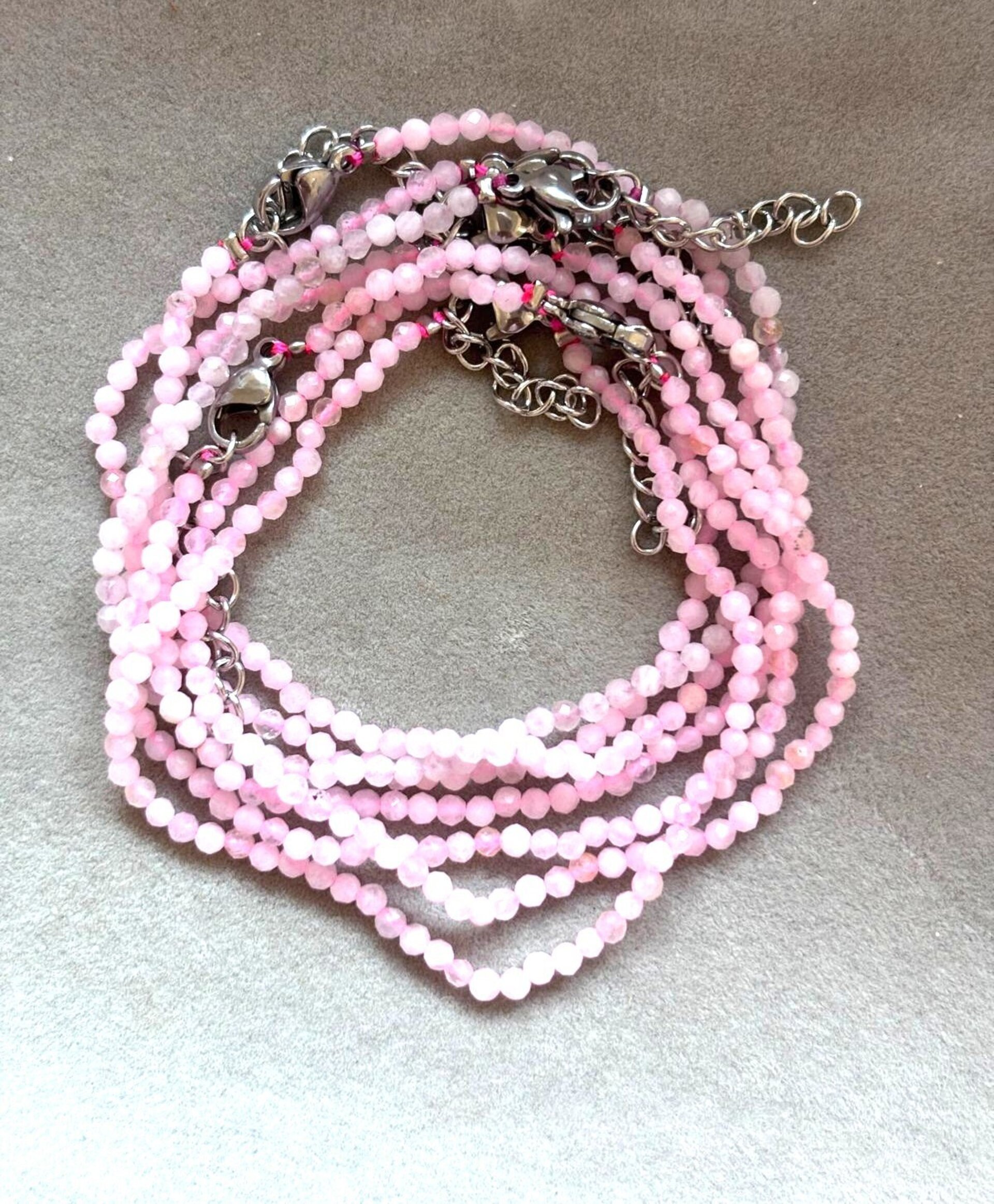 Pulsera cuarzo rosa facetado (acero inoxidable)